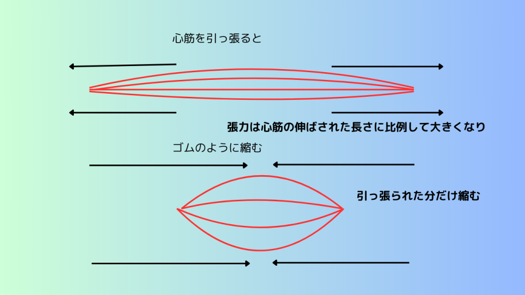 心筋はゴムのような性質があり、強く引っ張れば強く縮みます。